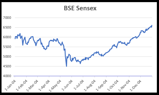 The Atal Bihari Vajpayee government, which had done a lot of good work for the economy, lost the elections. Most people were not expecting this election result. The BSE Sensex fell 6%.