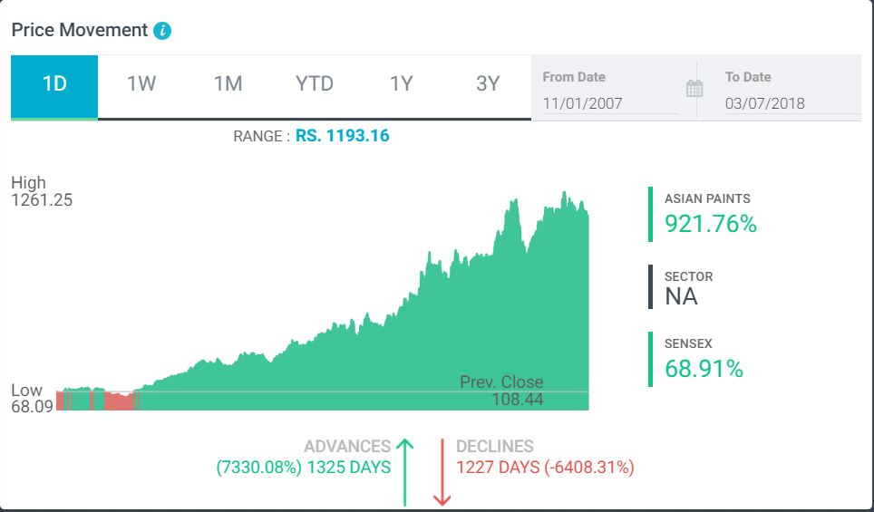 Now Asian Paints, has been much less volatile than most typical stocks. The Stocks that gave at least a 50% compounded return over the last 10 years, which I had covered in my last piece, each had at least one fall of around 50% from their last peak sometime in that 10-year incredible journey. The more the volatility the higher the temptation to sell when things go wrong.