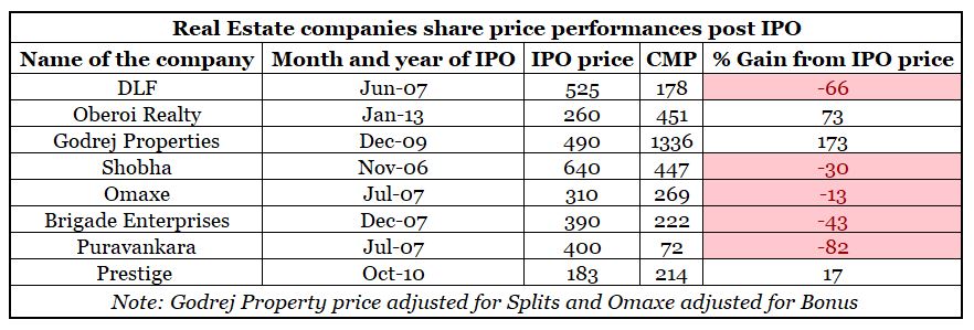 I would say that the listed real estate companies created huge amount of wealth destruction for the investors, because even while the stock market went up, the share prices of these companies went down. They did not give any meaningful returns to the investors over the long term. Many of them are not investor-friendly too as they have rarely declared dividend or bonus. Also, time and again, the issue of corporate governance keeps cropping up.