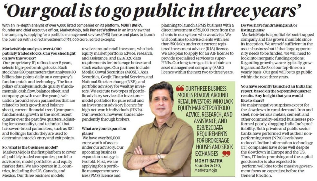 December 01 2022, 4:44: PM IST Facebook Twitter Linkedin Dr. Mohit Batra discusses MarketsMojo’s plans for growth and expansion.