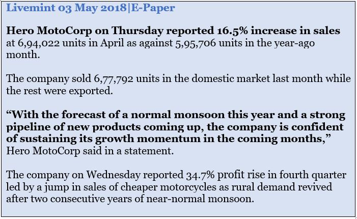 A look at the news section on our site or a simple Google search on Hero Motocorp News can give lot of information.