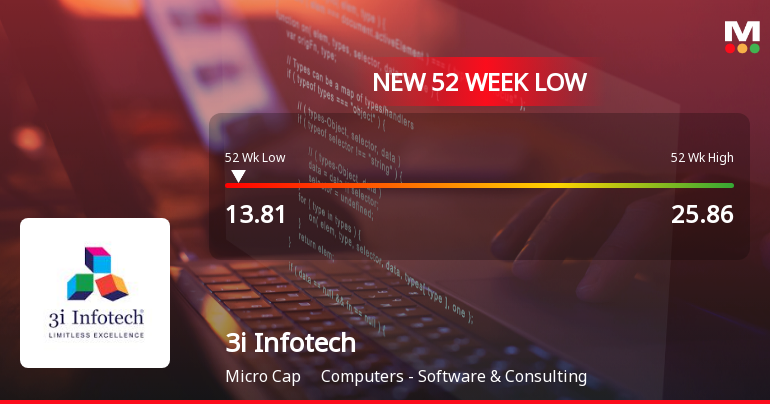 3i Infotech Ltd Stock Falls to 52-Week Low of Rs.13.81 Amidst Prolonged Downtrend