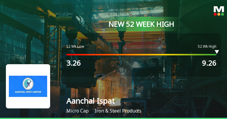 Aanchal Ispat Hits New 52-Week High at Rs.9.26 Marking Significant Rally