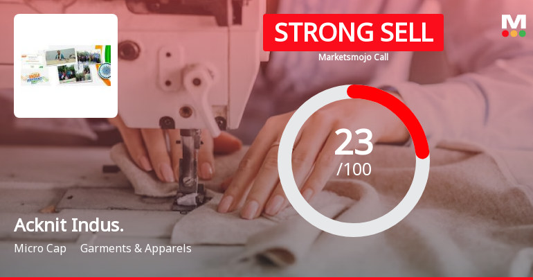 2026-03-04 10:10:02Acknit Industries Ltd is rated Strong Sell by MarketsMOJO, with this rating last updated on 18 Nov 2025. However, the analysis and financial metrics presented here reflect the stock’s current position as of 04 March 2026, providing investors with an up-to-date view of the company’s fundamentals, valuation, financial trends, and technical outlook.