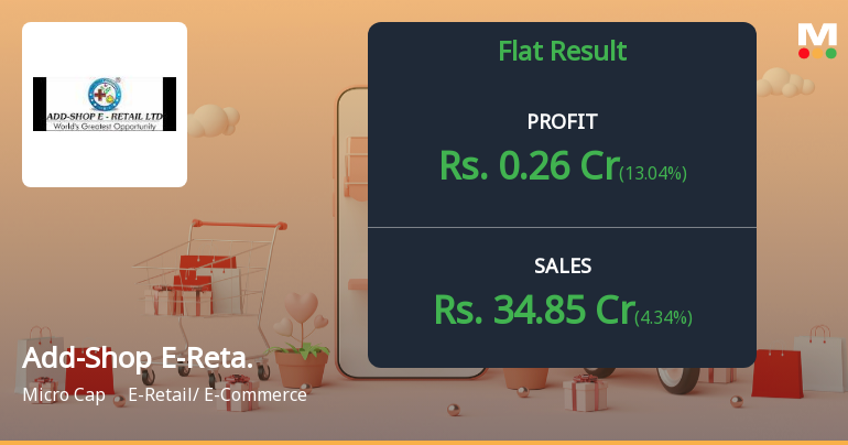 2026-02-13 21:25:44Add-Shop E-Retail Ltd., a micro-cap e-commerce player with a market capitalisation of ₹23.00 crores, reported a net profit of ₹0.26 crores for Q3 FY26 (October-December 2025), reflecting a modest sequential improvement of 13.04% from Q2 FY26 but a stark decline of 71.74% year-on-year. The company's stock has come under sustained pressure, trading at ₹8.14 as of February 13, 2026, down 3.1% on the day and languishing 36.01% below its level a year ago, significantly underperforming the broader market.