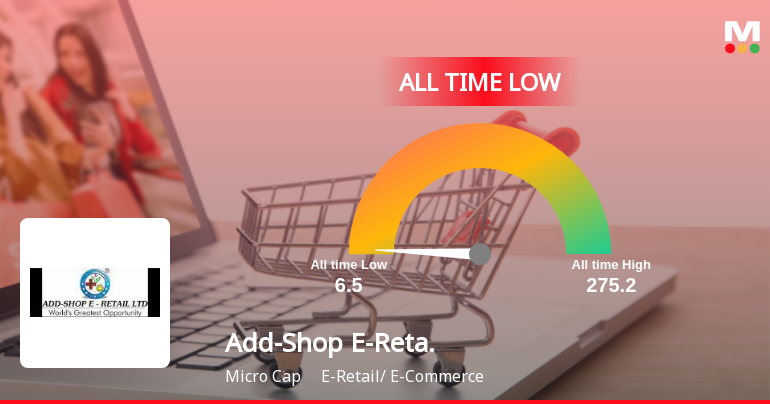 2026-03-06 14:40:08Add-Shop E-Retail Ltd’s shares declined to a fresh 52-week and all-time low of Rs.6.5 today, marking a significant milestone in the stock’s downward trajectory amid persistent underperformance relative to the broader market and sector peers.
