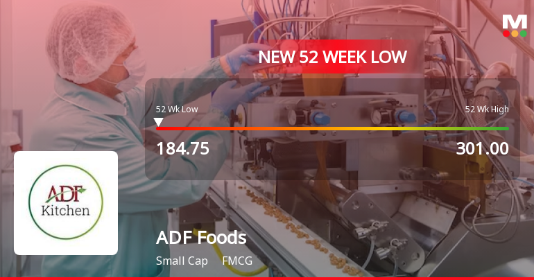 2026-01-20 11:10:15ADF Foods Ltd’s shares declined to a fresh 52-week low of Rs.185.15 on 20 Jan 2026, marking a significant milestone in the stock’s ongoing downward trajectory. The stock has underperformed both its sector and broader market indices, reflecting a series of challenges impacting investor sentiment and price momentum.