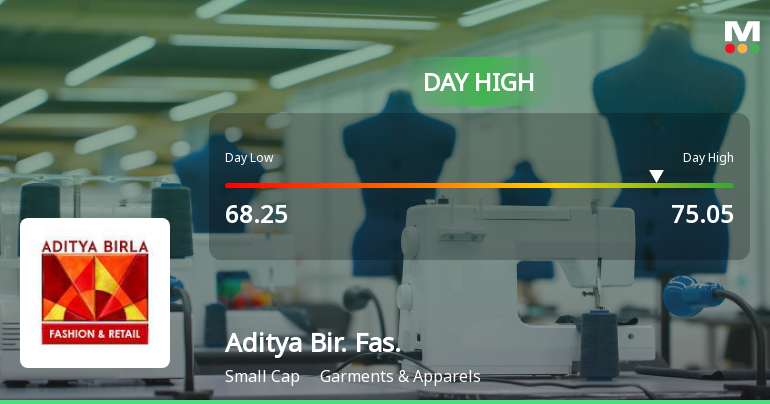 2026-02-03 09:38:53Aditya Birla Fashion & Retail Ltd recorded a robust intraday performance on 3 Feb 2026, surging to an intraday high of Rs 69.58, marking an 8.55% gain. The stock outperformed its sector and broader market indices, reflecting notable trading momentum amid a mixed market backdrop.