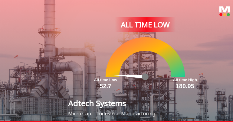 2026-02-25 11:28:09Adtech Systems Ltd, a player in the Industrial Manufacturing sector, has reached an all-time low in its stock price, closing just 0.57% above its 52-week low of ₹52.7. The stock’s recent performance reflects a sustained decline, with significant underperformance relative to key market indices and sector peers.