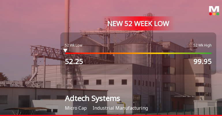 2026-02-25 12:20:37Adtech Systems Ltd, a player in the Industrial Manufacturing sector, has recorded a fresh 52-week low of Rs.52.25, marking a significant decline in its stock price amid a sustained downward trajectory over recent sessions.