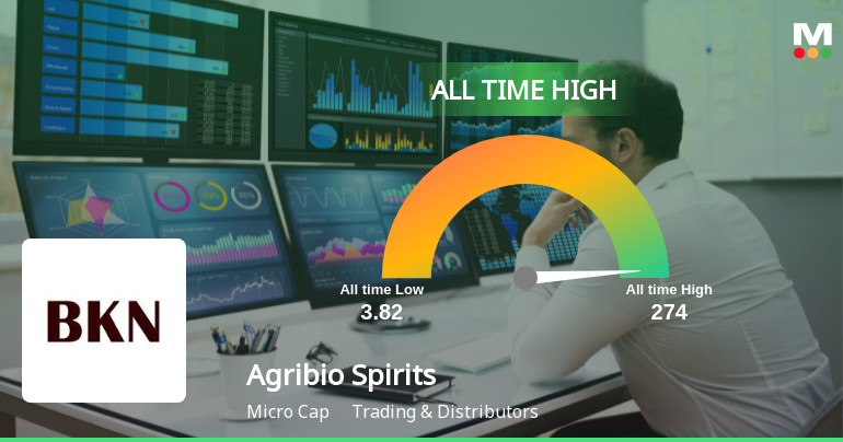 "description": "Agribio Spirits Ltd has reached a significant milestone by hitting an all-time high of Rs.274, reflecting a sustained period of strong performance and investor confidence. This achievement underscores the company’s robust market presence within the Trading & Distributors sector."