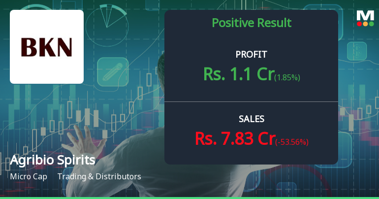 "description": "Agribio Spirits Ltd., a micro-cap trading and distribution company, reported a consolidated net profit of ₹1.08 crores for Q2 FY26, representing a modest 10.20% sequential increase but a concerning 10.74% year-on-year decline. Despite impressive revenue growth of 232.54% year-on-year to ₹16.86 crores, the company continues to grapple with negative operating margins and heavy reliance on other income to maintain profitability—a structural weakness that has prompted a \"SELL\" rating from analysts."
