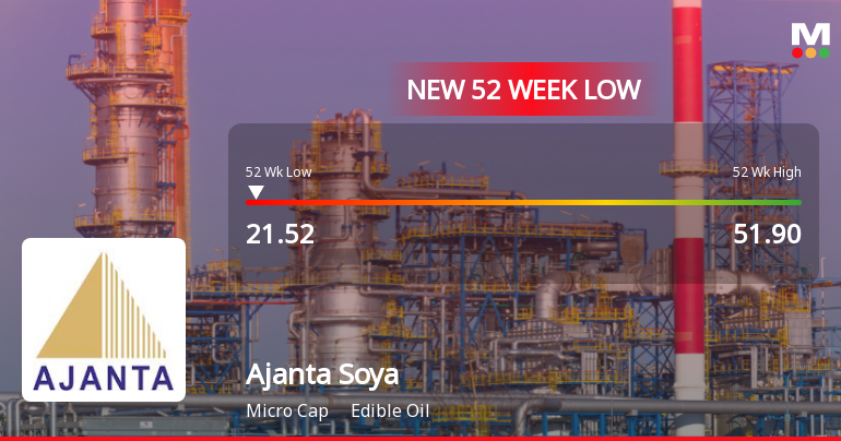Ajanta Soya Ltd Stock Falls to 52-Week Low of Rs.21.5 Amidst Market Downturn
