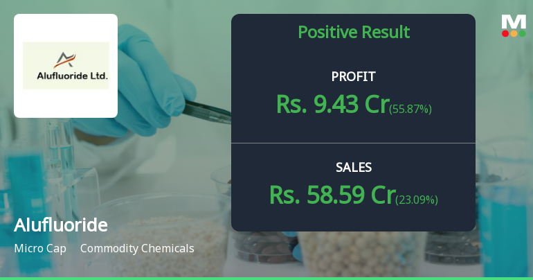 2026-01-22 16:34:22Alufluoride Ltd., a leading manufacturer of aluminium fluoride with an annual production capacity of 12,000 metric tonnes, reported robust profit growth in Q3 FY26, with net profit surging 55.87% year-on-year to ₹9.43 crores. The Visakhapatnam-based micro-cap company, valued at ₹318 crores, demonstrated strong revenue momentum with sales climbing 23.09% YoY to ₹58.59 crores, marking the highest quarterly revenue in company history.