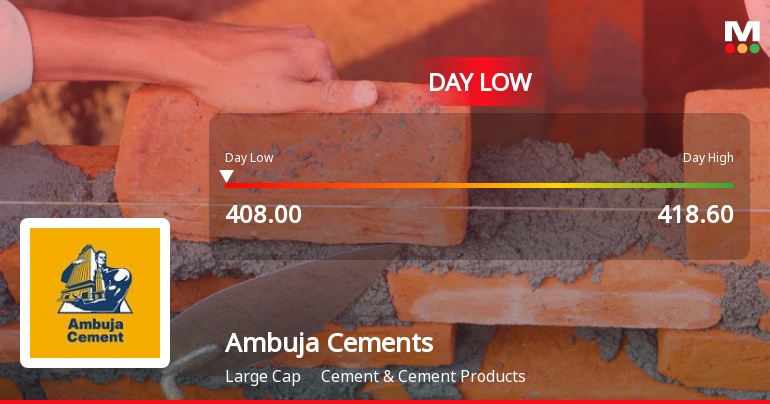 "description": "Ambuja Cements Ltd experienced a notable decline today, touching an intraday low of Rs 408.3, reflecting a 3.27% drop as the stock faced significant price pressure amid a broadly bearish market environment and sector underperformance."