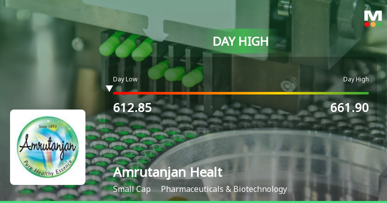 2026-02-17 09:33:05Amrutanjan Health Care Ltd recorded a robust intraday performance on 17 Feb 2026, surging to a day’s high of Rs 661.9, marking a significant 9.12% gain. The stock outperformed its Pharmaceuticals & Biotechnology sector peers and reversed a three-day downward trend, reflecting notable trading momentum amid a broadly subdued market.