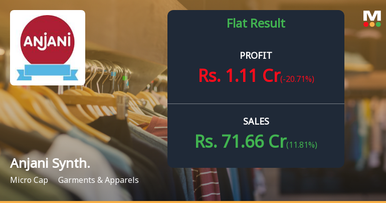 2026-02-13 20:40:33Anjani Synthetics Ltd., an Ahmedabad-based textile processing company, reported a challenging Q3 FY26 performance marked by margin compression despite moderate revenue growth. Net profit declined 20.71% quarter-on-quarter to ₹1.11 crores, whilst revenue contracted 3.99% sequentially to ₹71.66 crores. The company's stock, currently trading at ₹23.49, has underperformed dramatically over the past year, declining 49.55% against the Sensex's 8.52% gain. With a micro-cap market capitalisation of ₹35.00 crores, the company faces mounting pressure from deteriorating profitability metrics and persistent operational challenges.