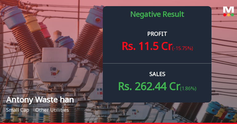 2026-01-30 21:34:33Antony Waste Handling Cell Ltd., a small-cap player in India's waste management sector with a market capitalisation of ₹1,659 crores, reported a concerning set of results for Q3 FY26 (October-December 2025), with consolidated net profit declining 27.03% year-on-year to ₹11.50 crores. The stock reacted positively in today's trading session, gaining 3.12% to close at ₹562.25, despite the underwhelming financial performance that saw operating margins compress to multi-quarter lows.