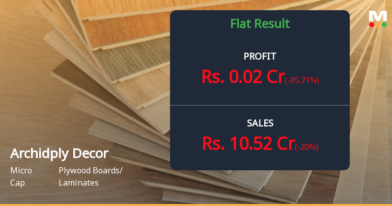 Archidply Decor’s recent price action has been notably weak. Over the past week, the stock declined by 3.21%, nearly double the Sensex’s modest fall of 1.54%. The one-month performance also shows a decline of 2.58%, contrasting with the Sensex’s slight gain of 0.01%. Year-to-date, the stock has dropped 9.16%, significantly underperforming the Sensex’s 3.64% fall. Even over the last year, Archidply Decor’s shares have lost 2.28%, while the Sensex gained a robust 11.68%. This persistent underperformance highlights investor concerns about the company’s prospects amid a challenging market environment.