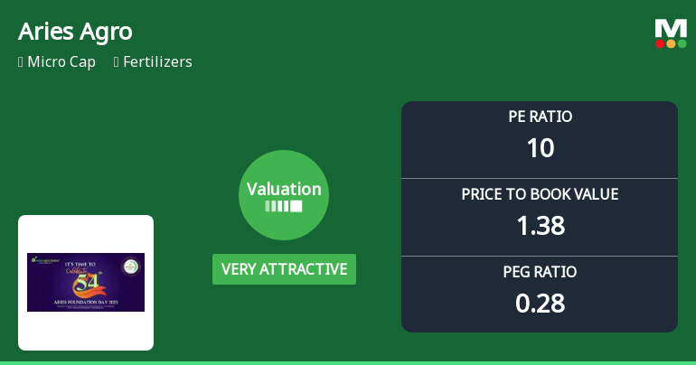 Aries Agro Ltd, a micro-cap player in the fertilisers sector, has seen a notable shift in its valuation parameters, moving from an attractive to a very attractive rating. Despite a modest day decline of 0.44%, the stock’s price-to-earnings (P/E) and price-to-book value (P/BV) ratios suggest a compelling investment case relative to its historical averages and peer group, even as the company faces a Sell grade from MarketsMOJO with a Mojo Score of 48.0.