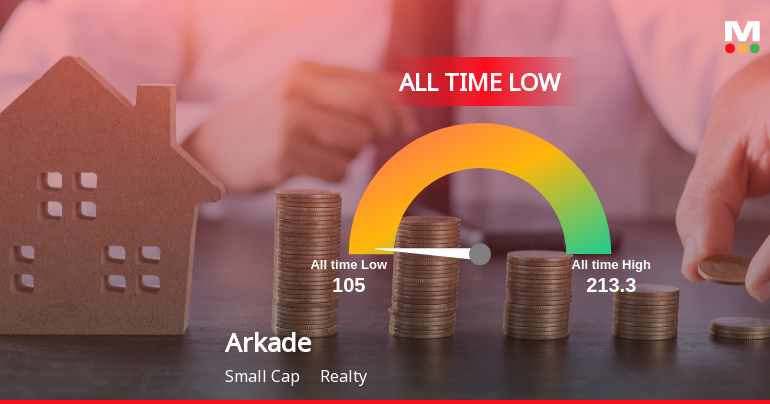 "description": "Arkade Developers Ltd, a small-cap player in the realty sector, has recorded a new all-time low price of Rs.101.65, marking a significant milestone in its ongoing decline. The stock’s recent performance reflects a sustained downward trajectory, underperforming both its sector and broader market indices over multiple time frames."