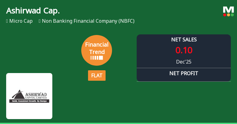 2026-02-16 08:00:12Ashirwad Capital Ltd, a micro-cap player in the Non Banking Financial Company (NBFC) sector, has reported a flat financial performance for the quarter ended December 2025, signalling a pause in its previously positive growth trajectory. Despite a modest increase in profit after tax (PAT) over the last six months, the company’s overall financial trend has shifted from positive to flat, reflecting challenges in sustaining revenue growth and margin expansion in a competitive environment.