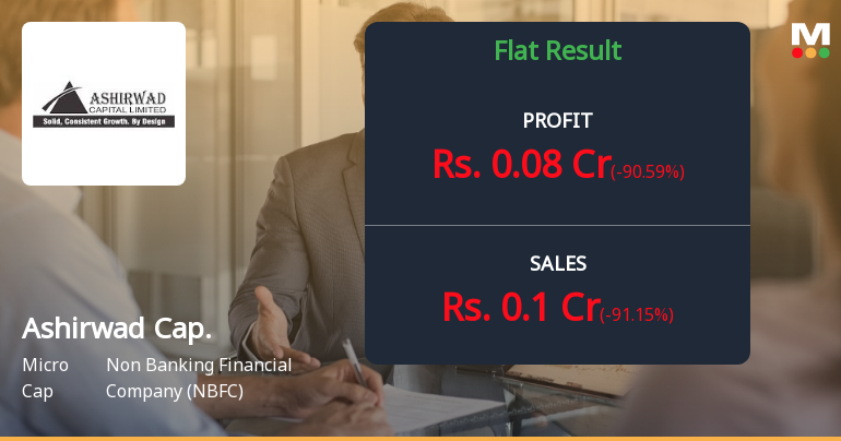 2026-02-13 22:34:46Ashirwad Capital Ltd., a micro-cap non-banking financial company (NBFC) with a market capitalisation of ₹24.00 crores, reported net profit of ₹0.08 crores in Q3 FY26 (October-December 2025), marking a sharp 90.59% decline quarter-on-quarter from the exceptional ₹0.85 crores recorded in Q2 FY26. Despite a modest 60.00% year-on-year improvement from ₹0.05 crores in Q3 FY25, the dramatic sequential collapse has raised serious questions about earnings sustainability and business model consistency for this Mumbai-based financial services provider.