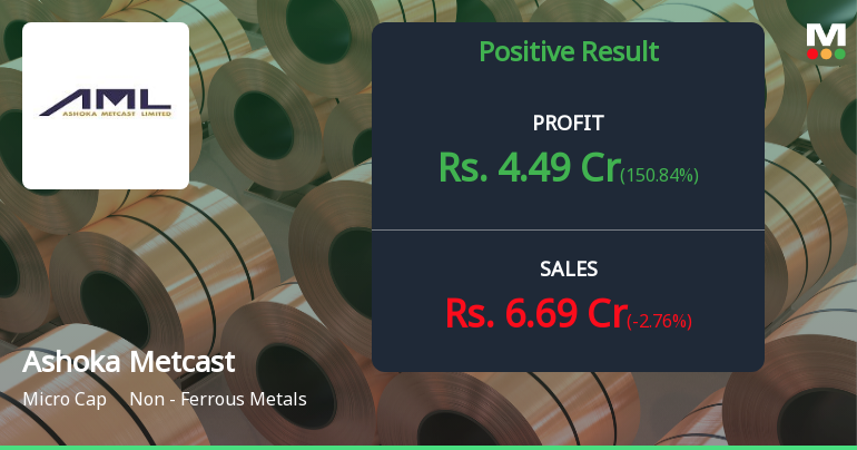 The stock has been under pressure for the past week, declining 4.32% compared to a near-flat Sensex performance of -0.01%. Over the last month, Ashoka Metcast’s share price dropped 6.49%, significantly underperforming the broader market’s 1.31% decline. Year-to-date, the stock has fallen 7.69%, while the Sensex has only dipped 1.94%. The longer-term picture is even more concerning, with the stock losing 32.43% over the past year despite the Sensex gaining 8.47%. Over three years, the stock has declined 16.52%, whereas the benchmark index surged 39.07%. These figures highlight persistent underperformance relative to the market.