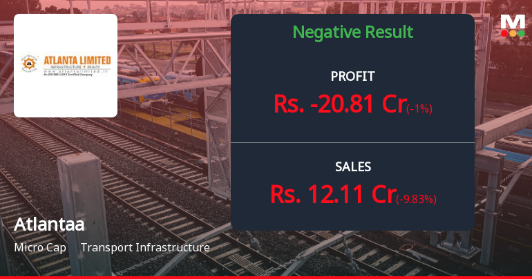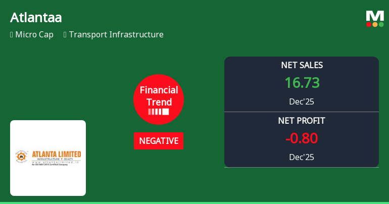 2026-02-09 18:00:51Atlantaa Ltd., a micro-cap infrastructure development company, reported a consolidated net loss of ₹20.81 crores for Q2 FY26, marking a sharp deterioration from the ₹1.71 crore loss in the previous quarter. The company, which operates in road construction, highways, bridges, and real estate development, has seen its operating performance collapse with an alarming operating margin of -135.18%, signalling severe operational distress. With a market capitalisation of ₹363 crores and the stock trading at ₹44.41 following a 3.65% decline, investors are grappling with mounting concerns about the company's ability to return to profitability.