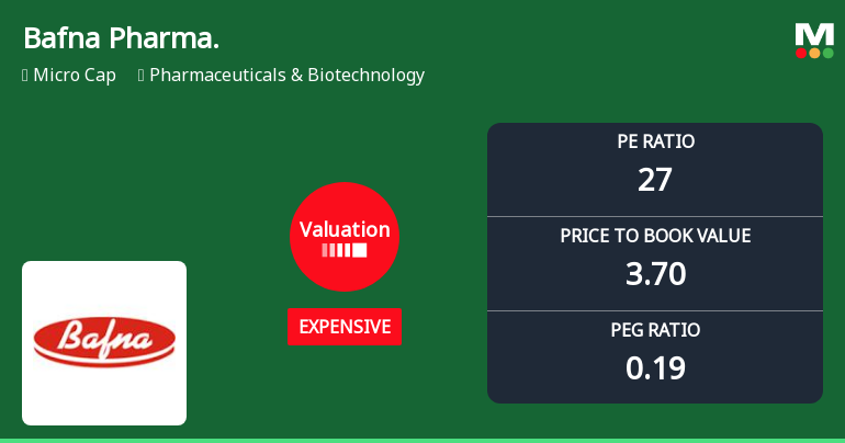 2026-04-10 08:00:44Bafna Pharmaceuticals Ltd has witnessed a notable shift in its valuation parameters, moving from fair to expensive territory, despite delivering mixed returns relative to the broader market. The micro-cap pharmaceutical player’s price-to-earnings (P/E) ratio now stands at 27.4, surpassing many peers, while its price-to-book value (P/BV) has risen to 3.7, signalling a premium that investors should carefully assess amid the company’s middling profitability metrics and sector dynamics.