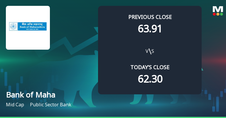 2026-03-23 10:51:58Bank of Maharashtra experienced a notable decline today, touching an intraday low of Rs 61.55, down 5.8% from its previous close. The stock underperformed its sector and the broader market amid widespread selling pressure and bearish sentiment across public sector banks and the Sensex.