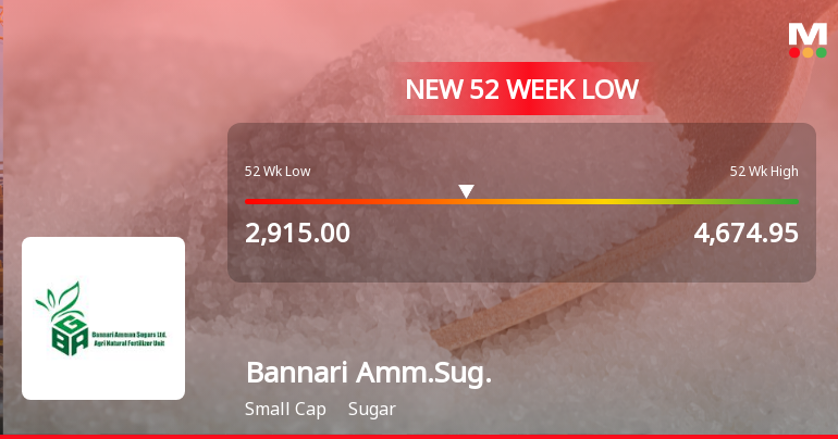 2025-12-23 09:45:59Bannari Amman Sugars touched a fresh 52-week low of Rs.2915 today, marking a significant price level for the sugar sector stock as it faced downward pressure amid broader market fluctuations and sector-specific factors.