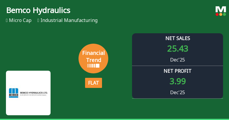 Bemco Hydraulics Ltd is rated 'Sell' by MarketsMOJO, with this rating last updated on 02 December 2025. However, the analysis and financial metrics discussed here reflect the stock's current position as of 07 February 2026, providing investors with an up-to-date view of the company’s fundamentals, valuation, financial trends, and technical outlook.