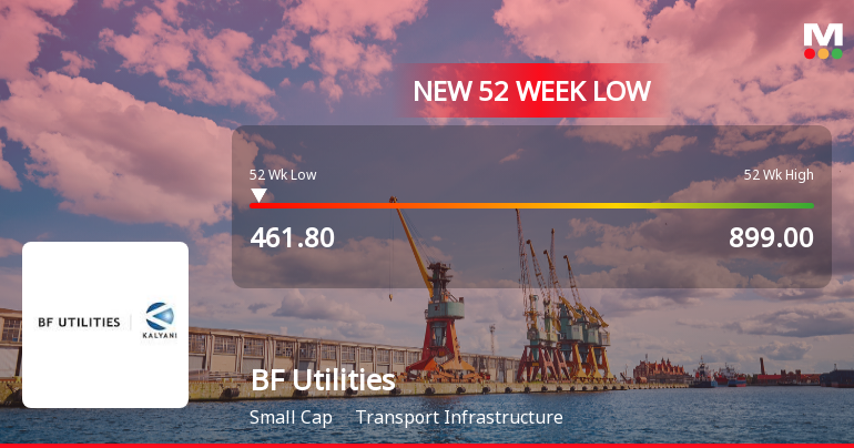 2026-03-05 10:00:33BF Utilities Ltd, a key player in the Transport Infrastructure sector, has touched a new 52-week low of Rs.461.8 today, marking a significant decline amid a sustained downward trend over recent sessions. The stock has underperformed its sector and broader market indices, reflecting ongoing pressures on its valuation and financial metrics.
