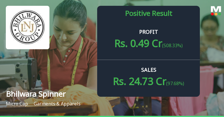2026-01-30 20:03:29Bhilwara Spinners Ltd., a Rajasthan-based textile manufacturer specialising in cotton yarn, synthetic blended yarn, and hosiery products, has reported troubling financial results for Q2 FY26, posting a net loss of ₹0.12 crores despite a dramatic 368.54% quarter-on-quarter revenue surge. The micro-cap company, with a market capitalisation of ₹106.00 crores, saw its stock trading at ₹119.00 as of January 30, 2026, reflecting investor concerns about profitability challenges that persist despite topline growth.