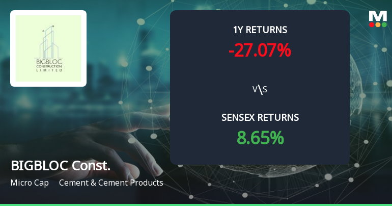 2026-01-01 10:10:03BIGBLOC Construction Ltd is rated Strong Sell by MarketsMOJO. This rating was last updated on 09 December 2024, reflecting a significant reassessment of the stock’s outlook. However, the analysis and financial metrics discussed below are based on the company’s current position as of 01 January 2026, providing investors with the latest insights into its performance and prospects.