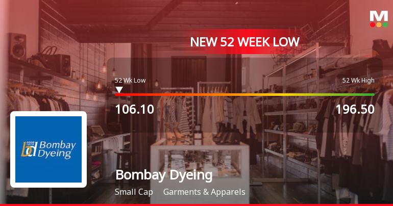 2026-03-06 11:41:18Bombay Dyeing & Manufacturing Company Ltd has touched a new 52-week low of Rs.106.1 today, marking a significant decline in its stock price amid ongoing financial pressures and subdued market performance within the garments and apparels sector.