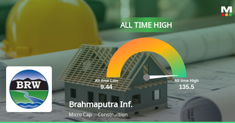 2025-12-29 10:15:08Brahmaputra Infrastructure Ltd has surged to a fresh 52-week and all-time high of Rs.135.5, marking a significant milestone in its stock performance. This achievement reflects sustained momentum driven by robust gains over recent sessions and favourable technical indicators.