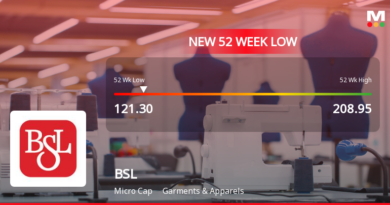 2026-03-04 14:41:26Shares of BSL Ltd, a player in the Garments & Apparels sector, have declined to a new 52-week low, closing just 3.5% above the lowest price of Rs 121.3. This marks a significant downturn for the stock, which has been on a downward trajectory over the past year, reflecting ongoing challenges in its financial and operational metrics.