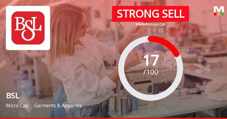 2026-02-16 10:10:47BSL Ltd is rated Strong Sell by MarketsMOJO, with this rating last updated on 22 December 2025. However, the analysis and financial metrics discussed here reflect the stock’s current position as of 16 February 2026, providing investors with an up-to-date view of the company’s fundamentals, returns, and market performance.