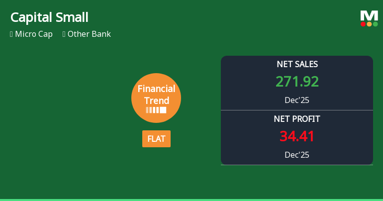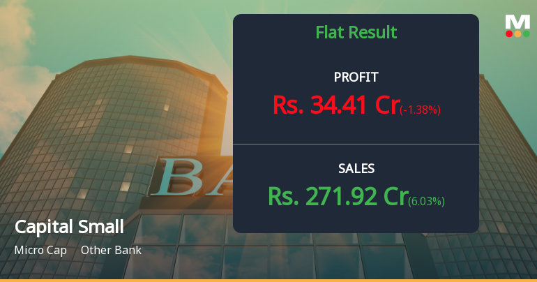 2026-01-29 16:05:55Capital Small Finance Bank Ltd. reported modest quarterly performance for Q2 FY26, with net profit reaching ₹34.89 crores, marking a sequential growth of 9.00% quarter-on-quarter but a muted 4.65% year-on-year increase. The Punjab-based micro-cap lender, with a market capitalisation of ₹1,163 crores, continues to demonstrate resilience in core banking operations, though concerns persist around elevated non-operating income contribution and a challenging valuation environment. The stock has declined 14.07% over the past year, significantly underperforming both the Sensex and its sector peers, trading at ₹256.55 as of January 29, 2026.