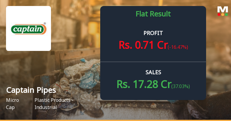 Year-to-date, Captain Pipes has experienced a steep decline of 39.98%, starkly contrasting with the Sensex’s robust gain of 8.69%. Even over the last one year, the stock has fallen by 26.73%, whereas the benchmark index has appreciat...