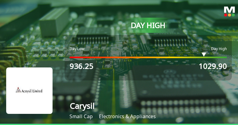 2026-02-04 14:46:43Carysil Ltd recorded a robust intraday performance today, surging to a high of Rs 1,029.70, marking a 7.85% increase from its previous close. This strong upward movement outpaced the broader Electronics & Appliances sector and the Sensex, reflecting significant trading momentum and volatility in the stock.