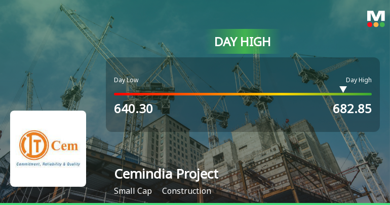 2026-02-03 11:06:55Cemindia Projects Ltd recorded a robust intraday performance on 3 Feb 2026, surging to an intraday high of Rs 682.85, marking an 8.21% increase from its previous close. The stock outperformed its sector and broader market indices, reversing a two-day decline and demonstrating notable trading momentum within the construction industry.