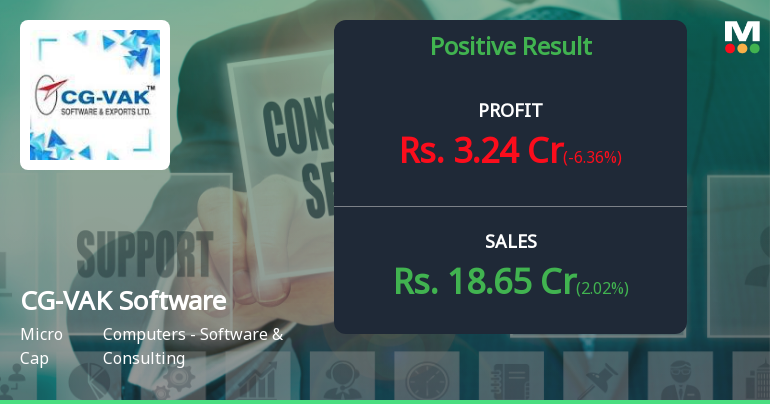 2026-02-11 17:46:32CG-VAK Software & Exports Ltd., a Coimbatore-based IT services provider, reported a mixed performance for Q3 FY26 (October-December 2025), with net profit rising 20.90% year-on-year to ₹3.24 crores despite a 5.52% decline in revenue. The company's stock surged 6.79% on February 11, 2026, closing at ₹228.00, as investors responded positively to the margin expansion story that saw operating profit margins touch a seven-quarter high of 23.86%.