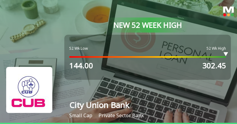 2026-01-30 15:40:09City Union Bank Ltd. has reached a significant milestone by hitting a new 52-week and all-time high of Rs.304.45 today, reflecting robust momentum in the private sector banking space. This surge comes amid a broader market environment where the Sensex opened lower but City Union Bank outperformed its sector peers with a notable 3.62% gain on the day.