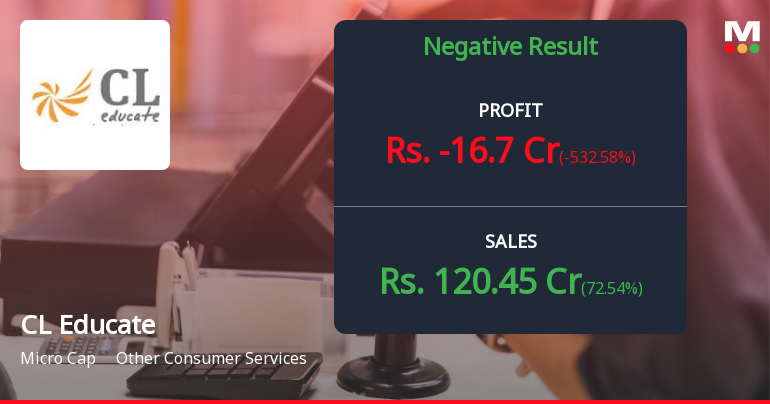 2026-02-06 09:44:41CL Educate Ltd., the New Delhi-based education services provider, reported a sharp deterioration in profitability for Q3 FY26, posting a consolidated net loss of ₹16.70 crores compared to a loss of ₹2.64 crores in the corresponding quarter last year. Despite robust revenue growth of 72.54% year-on-year to ₹120.45 crores, the company's bottom line was severely impacted by surging interest costs and operational challenges. The stock has reacted negatively to the results, trading at ₹70.27 as of February 6, 2026, down 43.10% over the past year and significantly underperforming both the Sensex and its sector peers.