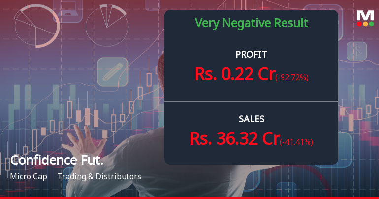 Confidence Futuristic Energetech Ltd., a micro-cap trading and distribution company with a market capitalisation of ₹94.00 crores, reported consolidated net profit of ₹0.42 crores for Q2 FY26 (Jul-Sep'25), representing a sequential increase of 50.00% from Q1 FY26's ₹0.28 crores but a sharp year-on-year decline of 57.14% from ₹0.98 crores in Q2 FY25. The company's stock currently trades at ₹36.51, down 67.97% from its 52-week high of ₹114.00, reflecting investor concerns about deteriorating operational performance and mounting structural challenges in the business.