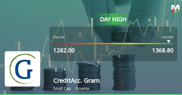 2026-01-21 09:31:35CreditAccess Grameen Ltd demonstrated robust intraday strength on 21 Jan 2026, surging 8.6% to touch a high of Rs 1326.4, significantly outperforming its finance sector peers and the broader Sensex index amid a volatile trading session.