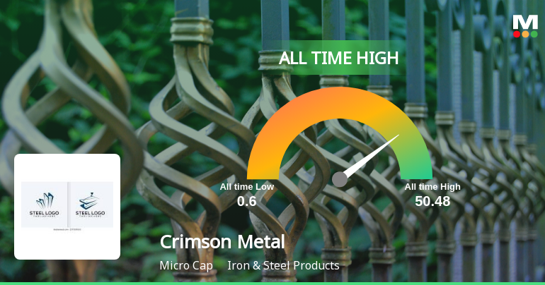 2026-01-12 09:33:01Crimson Metal Engineering Company Ltd, a key player in the Iron & Steel Products sector, has reached a significant milestone by hitting an all-time high of Rs.50.48. This achievement marks a remarkable phase in the company’s market performance, reflecting sustained gains and strong momentum over recent periods.